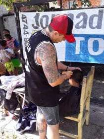 Desde la ONG “Centro Cultural Unidos por Vos”, varios colegas del colectivo de “Peluqueros Peronistas” no solo cortaron el pelo a los chicos que concurren al comedor, sino también a vecinos del barrio.