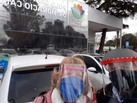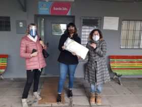En cada dependencia de salud el presidente del Rotary Club Escobar Juan Carlos Estrella y la secretaria ejecutiva María del Carmen Fernández, entregaron 30 unidades de las citadas vinchas y máscaras.