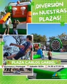 También el sábado, de 14.30 a 17.30 en la plaza Carlos Gardel (Quintana y Portugal) habrá actividades recreativas y deportivas para toda la familia: juegos inflables, Zumba y música. Y a las 17 en el parque del Bicentenario (Berutti y Los Pinos) la “Kermesse en la Plaza” con juegos y la presencia de la Compañía de Autómatas La Musaranga, y además los puestos de los Talleres Culturales (Dibujo y Pintura, Manicuría, Kokedama, Cocina y Panadería).