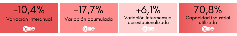 Todos estos resultados surgen del Índice de Producción Industrial Pyme (IPIP) que elabora CAME, con una muestra que alcanzó a 414 industrias pyme a nivel federal.