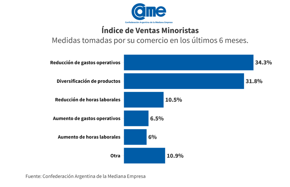 Como consecuencia de los obstáculos previamente mencionados, el 34,3% de los encuestados tuvo que reducir gastos operativos en los últimos 6 meses, otro 31,8% diversificó sus productos y 10,5% tuvo que achicar la cantidad de horas laborales.