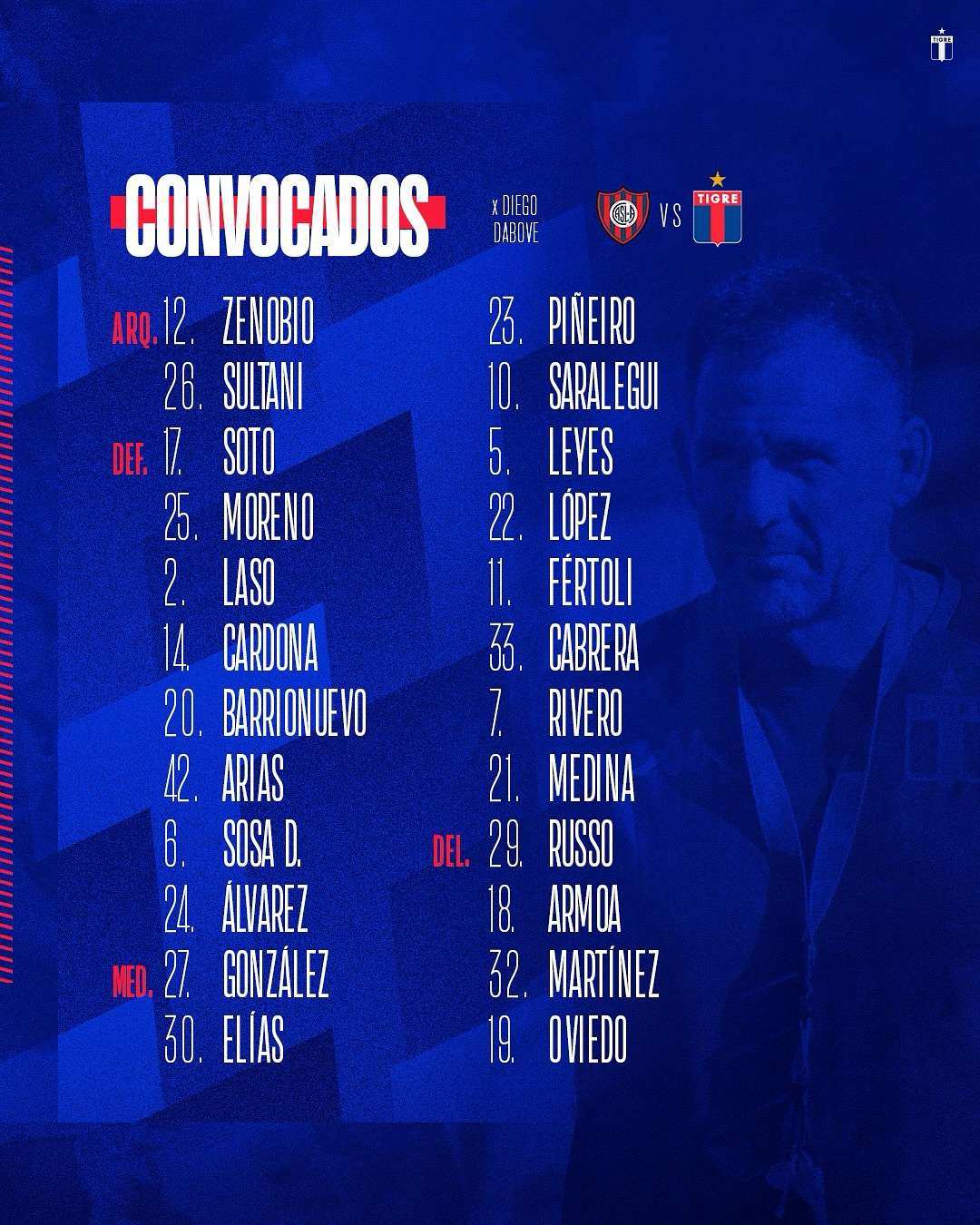 Diego Dabove citó a los siguientes futbolistas para los 8vos de Final de la #CopaAegentina frente a @sanlorenzo