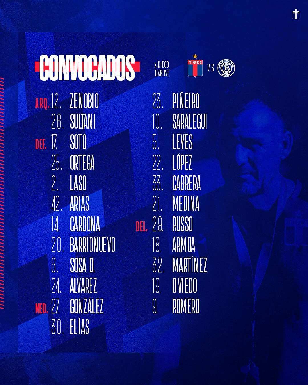 Tigre: Felipe Zenobio; Guillermo Soto, Joaquín Laso, Tomás Cardona, Federico Álvarez; Bruno Leyes, Santiago González, Jabes Saralegui, Elías Cabrera; Sebastián Medina e Ignacio Russo. DT: Diego Dabove.