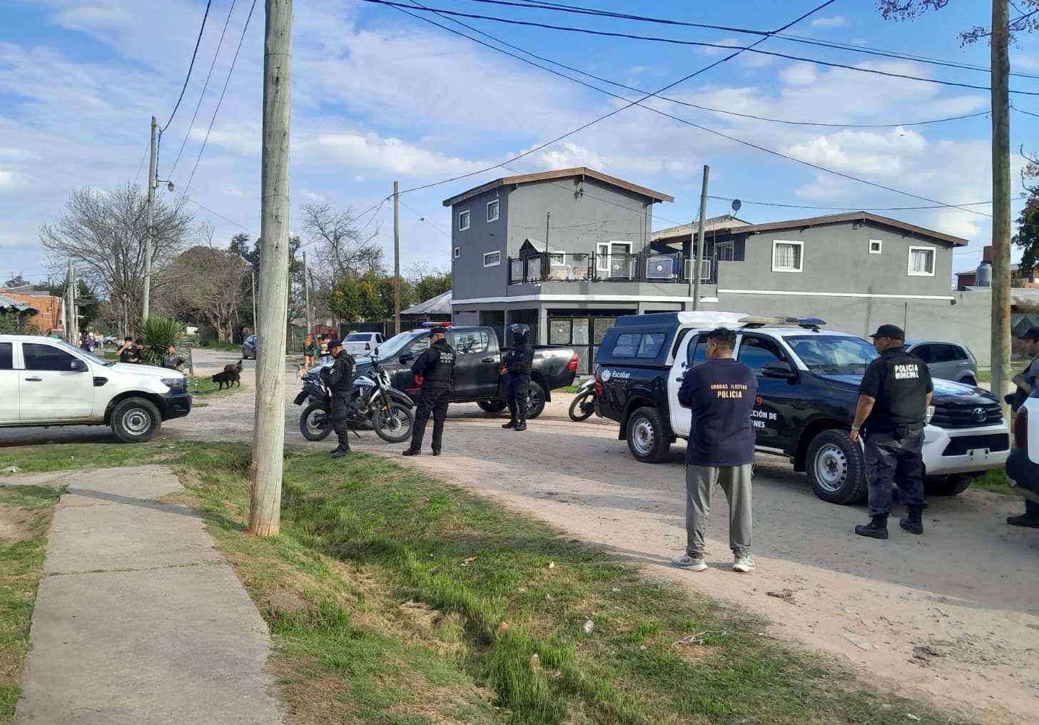 El operativo contó con la participación de la Policía Municipal de Escobar, que se encargó de custodiar el perímetro para garantizar la seguridad de los vecinos y brindar apoyo. Además, intervino personal del Grupo de Operaciones Especiales (GOE), la División Canina K9, el COE y el personal operativo de la Subdelegación D.T.D.I. Escobar, dependiente de la DDITDI Zárate-Campana, quienes llevaron adelante las tareas investigativas y ejecutaron los allanamientos.