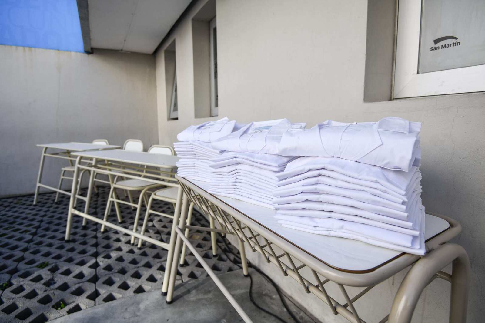 Durante la jornada, se hizo entrega de 600 guardapolvos, 180 sillas y 90 mesas para instituciones educativas del distrito, producidas por internos del Polo Industrial Textil de la Unidad Penitenciaria N°37 de Barker y del Polo Industrial de Mobiliario Escolar de la Unidad Penitenciaria N°57 de Campana.