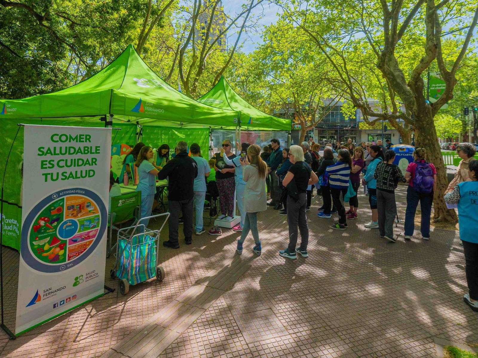 En adhesión al Dia Mundial del Corazón, el Municipio de San Fernando ofreció a las vecinas y vecinos en la Plaza Mitre del casco céntrico los servicios de atención gratuita que más ayudan al cuidado cardiovascular. Acompañaron esta actividad la Concejal Alicia Aparicio, ex Diputada Nacional; y el Secretario de Salud municipal, Marcelo Campos.