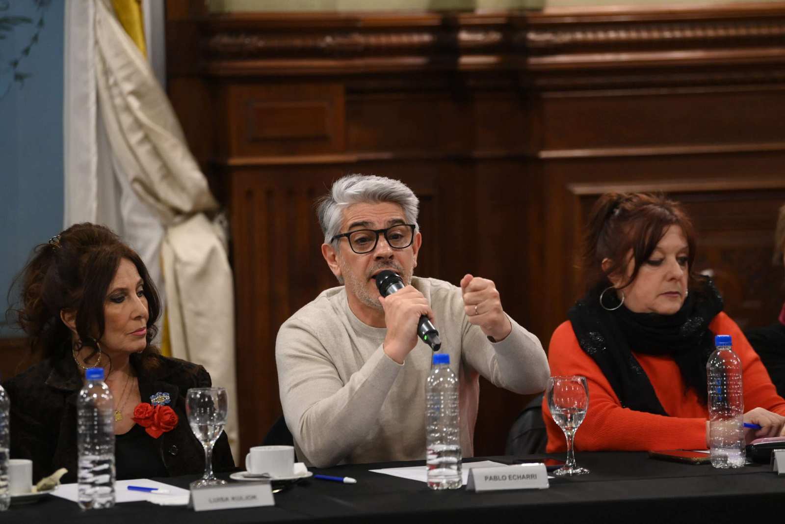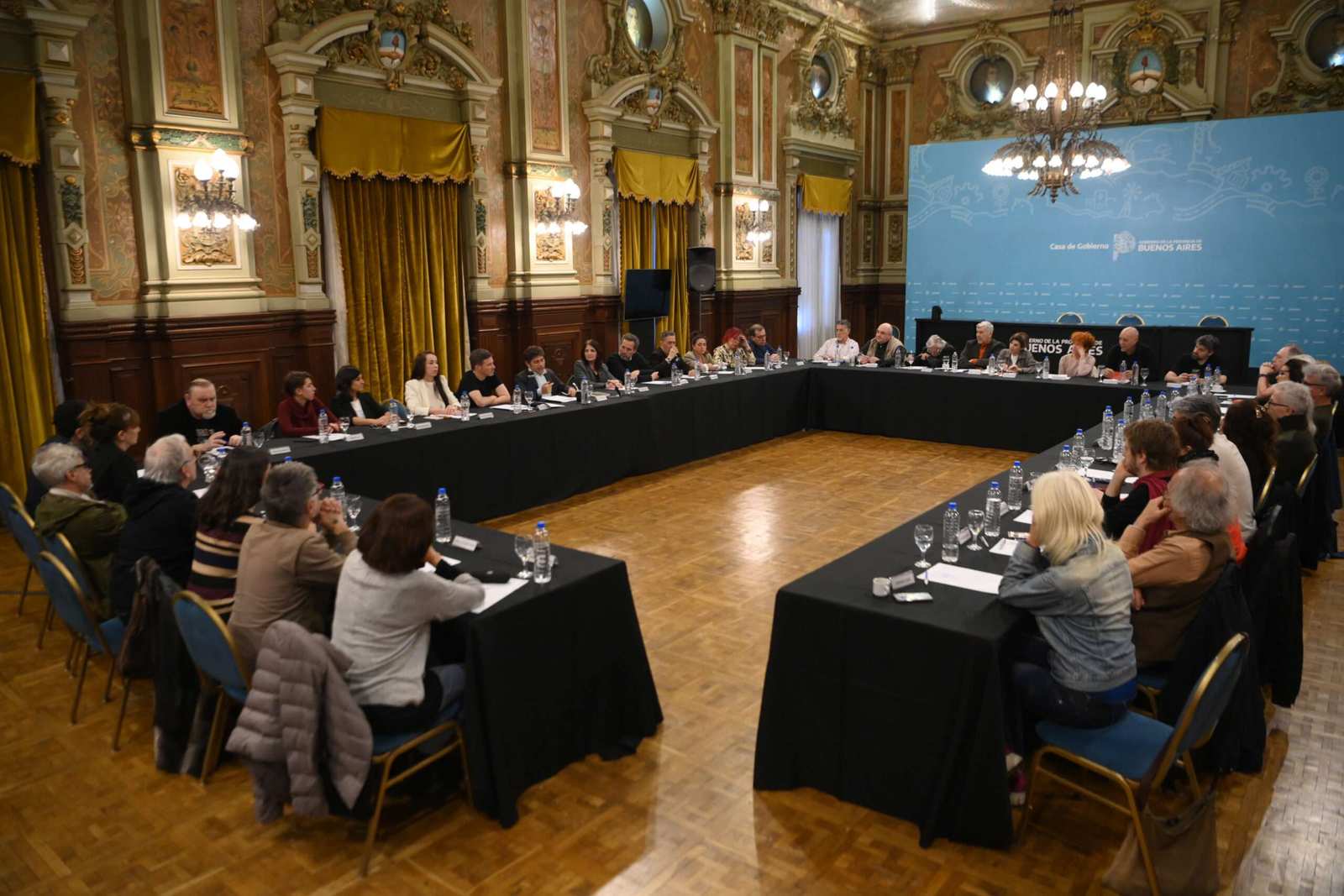 El gobernador de la provincia de Buenos Aires, Axel Kicillof, encabezó este lunes una reunión con artistas y referentes de la cultura en el Salón Dorado de la Casa de Gobierno bonaerense. Lo acompañaron el ministro de Producción, Ciencia e Innovación Tecnológica, Augusto Costa; las subsecretarias de Promoción Sociocultural, Lorena Riesgo, y de Políticas Culturales, Victoria Onetto; y el director del Teatro Argentino, Ernesto Bauer.