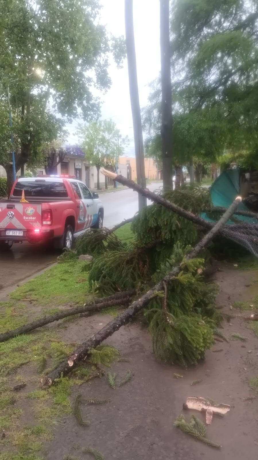 Los equipos de la Municipalidad de Escobar trabajaron desde las primeras horas en tareas de limpieza, recolección de ramas y residuos, y retiro de árboles y postes caídos, junto con el apoyo de Defensa Civil, Bomberos Voluntarios y personal de las UGC. También se registró la caída de algunos carteles por las fuertes ráfagas.
