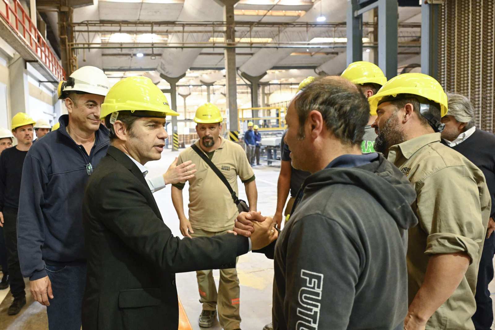 Durante la jornada, el Gobernador y el ministro de Trabajo, Walter Correa, visitaron la fábrica Cantera Cerro Negro, dedicada a la producción de cerámicos, porcelanatos y ladrillos huecos. Allí dialogaron con trabajadores sobre la situación crítica que atraviesa la empresa ante la caída del sector de la construcción.