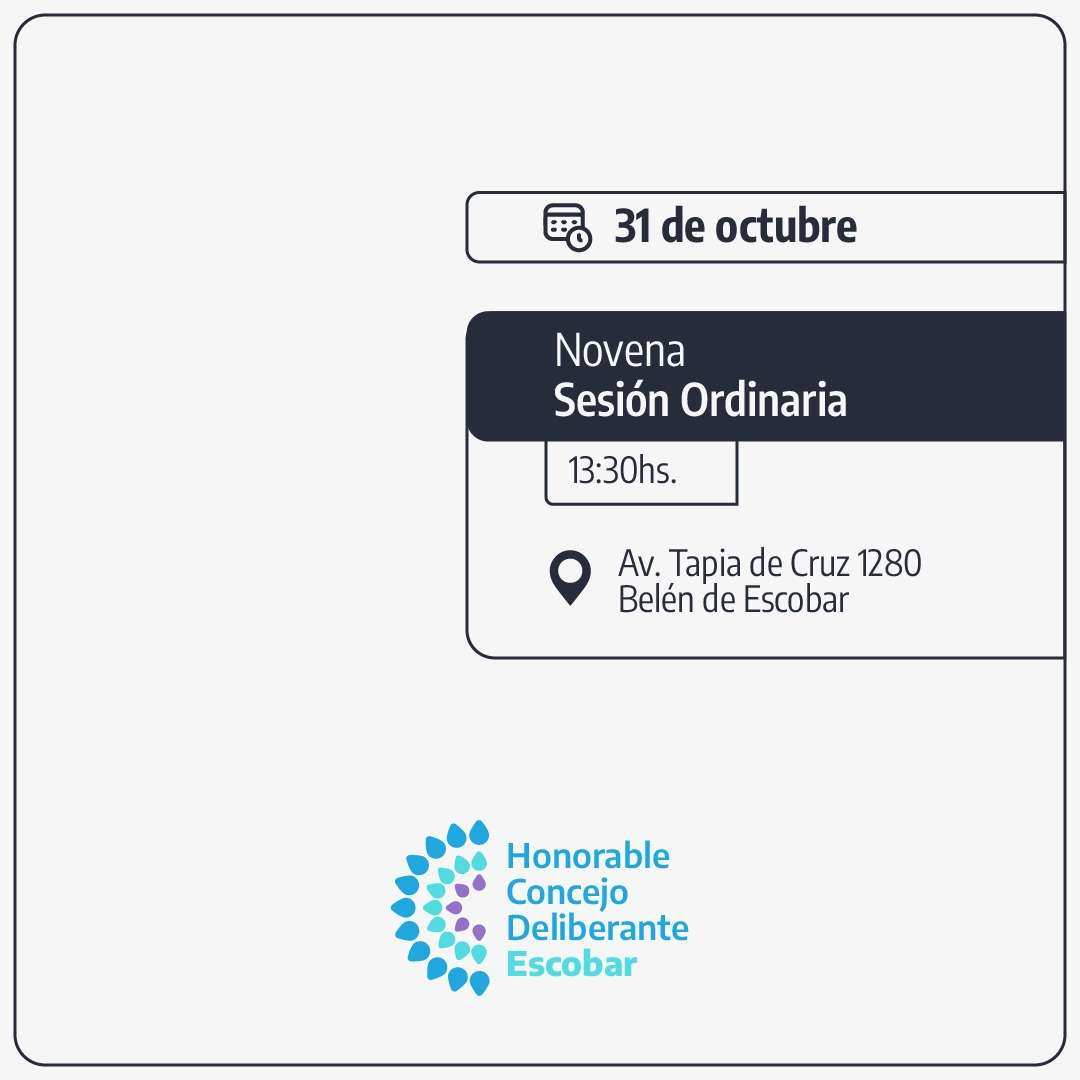 El Concejo Deliberante de Escobar realizará este viernes 31 de octubre, a partir de las 13:30, su 9ª sesión ordinaria del año. En la jornada, los concejales debatirán una nutrida agenda de proyectos vinculados a la regulación del tránsito, la denominación de calles y la convalidación de contratos y donaciones al municipio.