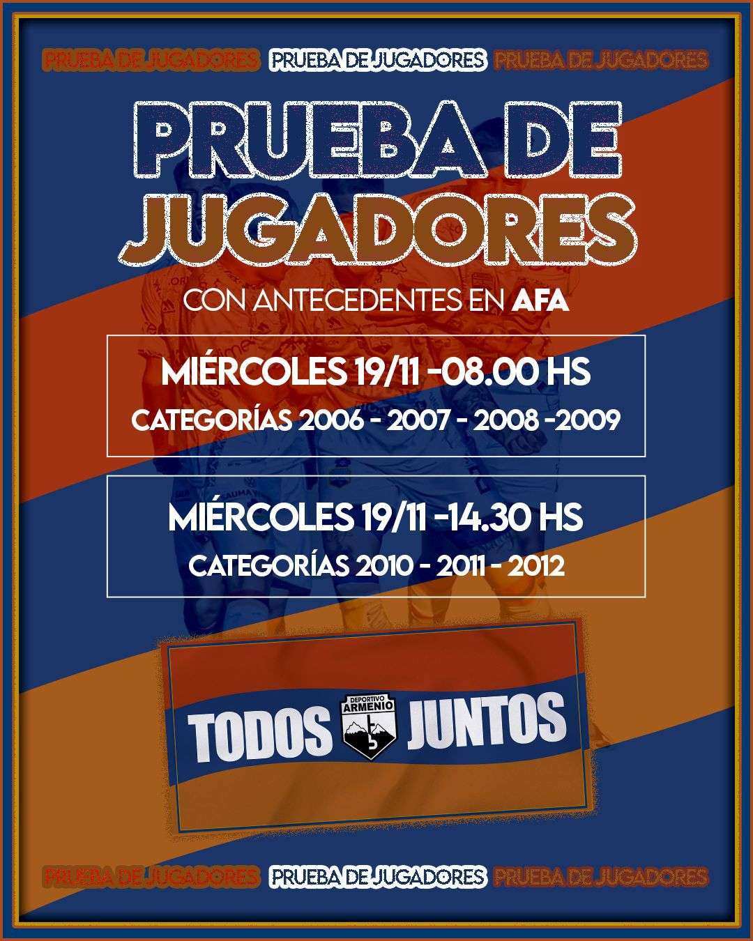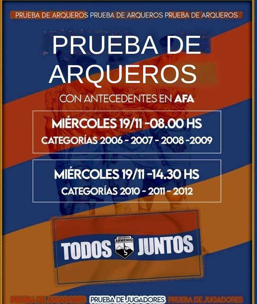 El Club Deportivo Armenio convoca a jóvenes futbolistas y arqueros con antecedentes en AFA a participar de las pruebas abiertas que se realizarán durante el mes de noviembre, con el objetivo de incorporar nuevos talentos a sus divisiones juveniles.