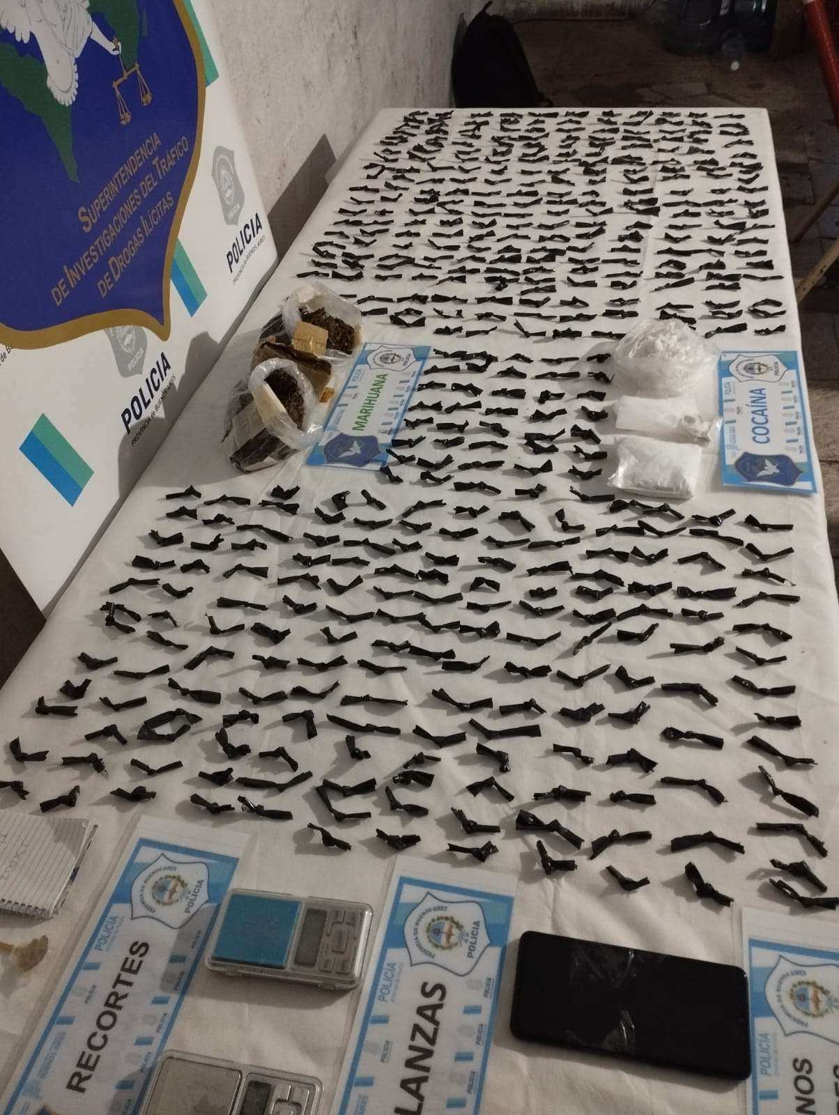 Durante los allanamientos se secuestraron más de 1.700 gramos de cocaína y 856 gramos de marihuana fraccionada, listas para su comercialización por un valor estimado en $10.000.000. También se incautaron balanzas de precisión, teléfonos celulares y elementos de corte, utilizados para el fraccionamiento de la droga.