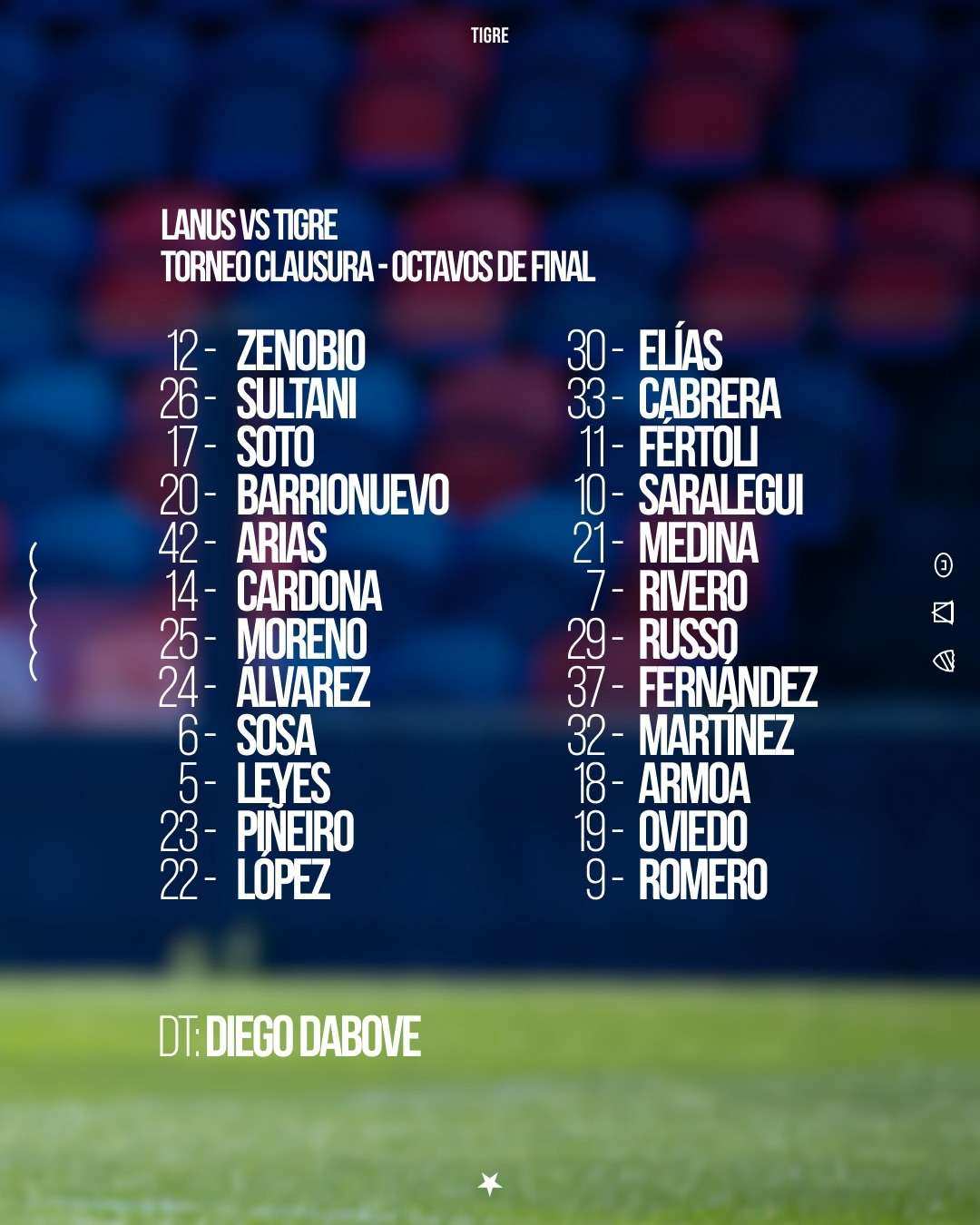 Los convocados por Diego Dabove para disputar los 8vos de final del #TorneoBetano Clausura 2025 frente a @clublanusoficial