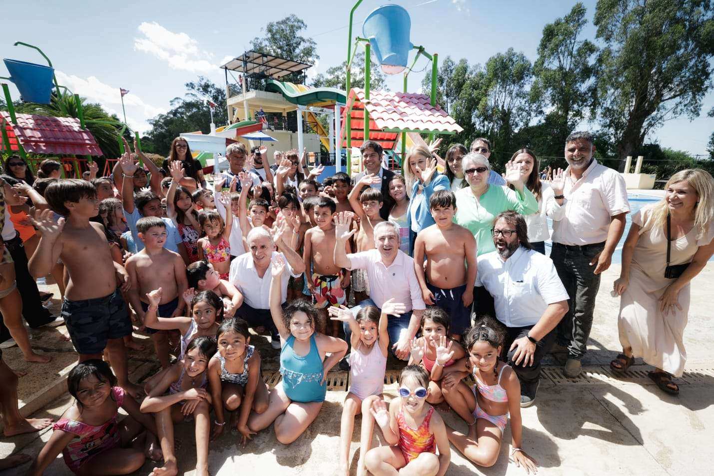 “Esta temporada estamos teniendo una ocupación del 62%, lo que representa una caída respecto de lo que estábamos acostumbrados. Además, disminuyó un 40% el gasto que las y los turistas hacen en los comercios de Chascomús, afectando fuertemente los ingresos de las familias locales”, remarcó el intendente Gastón. Durante la jornada, Kicillof y la directora general de Cultura y Educación, Flavia Terigi, recorrieron el parque acuático Puerto Aventura, donde niñas y niños de diferentes escuelas locales participan de actividades recreativas en el marco del programa Escuelas Abiertas en Verano.