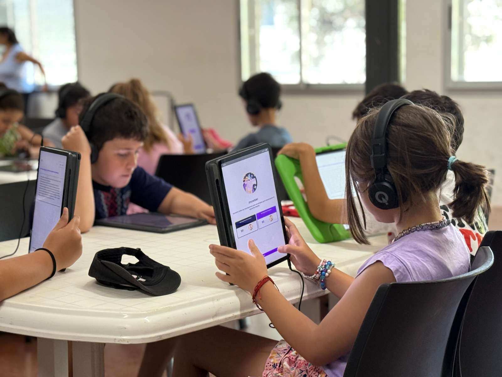 En esta actividad los chicos utilizan tablets para hablar en voz alta, responden preguntas, completan consignas y reciben desafíos personalizados según sus necesidades de aprendizaje. A medida que los chicos avanzan, un sistema de Inteligencia Artificial mide su progreso en habilidades lingüísticas y adapta las actividades para reforzar los aspectos que presentan mayor dificultad. De esta manera, el aprendizaje se personaliza, combinando tecnología, juego y pedagogía.