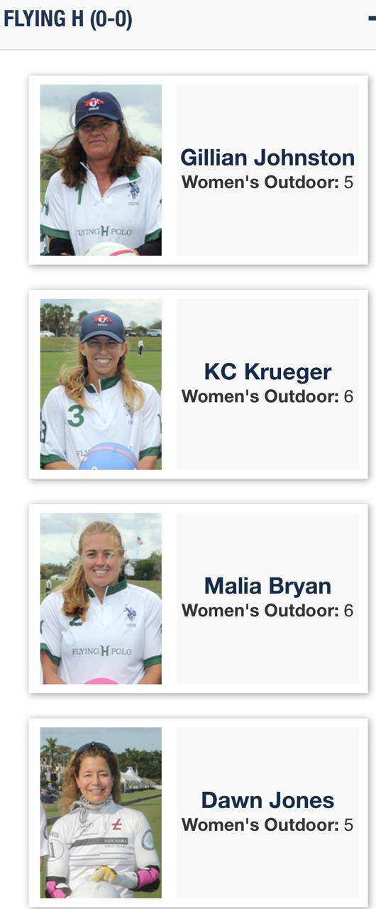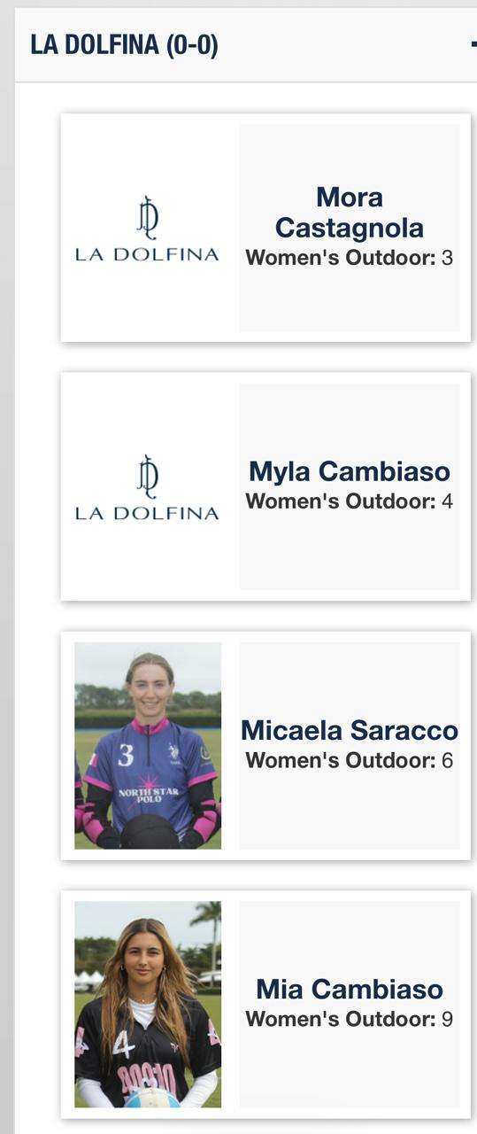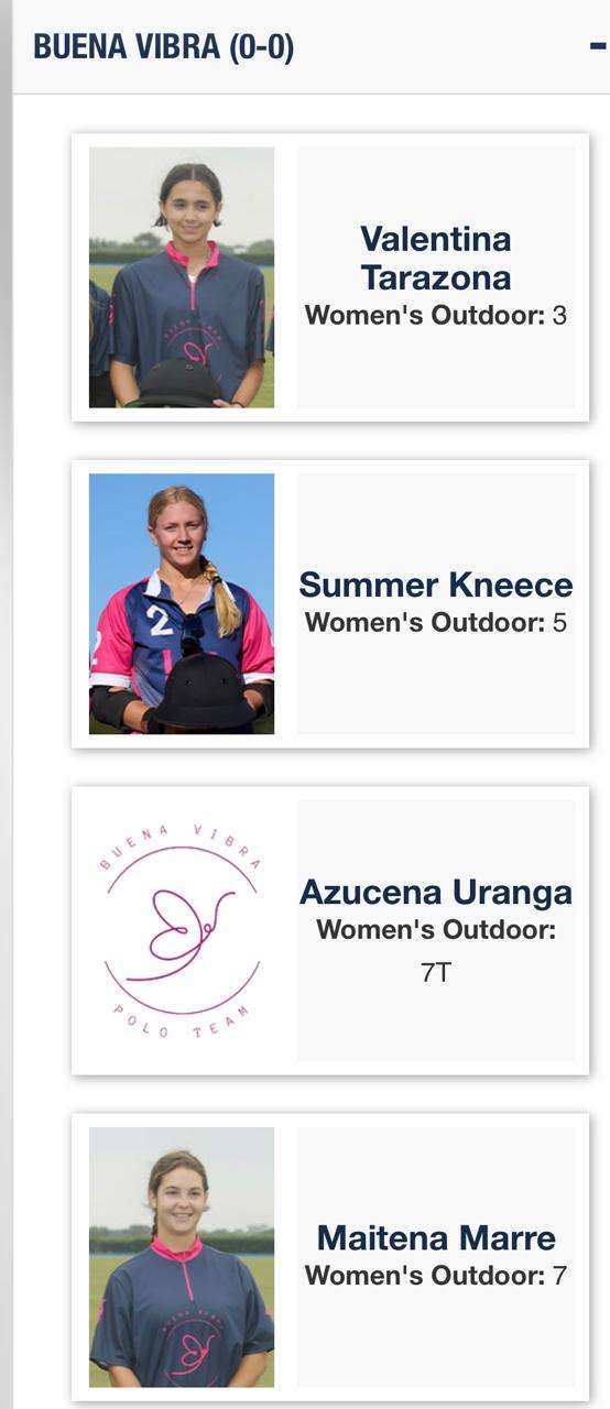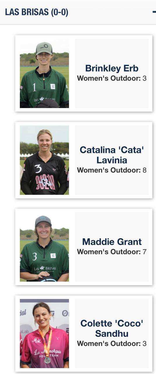 - Hope Arellano (10) – Wellington, Florida. Única americana con handicap perfecto en la actualidad. Primera mujer estadounidense en disputar un Mundial masculino (2022). Actual subcampeona mundial y campeona argentina con La Dolfina