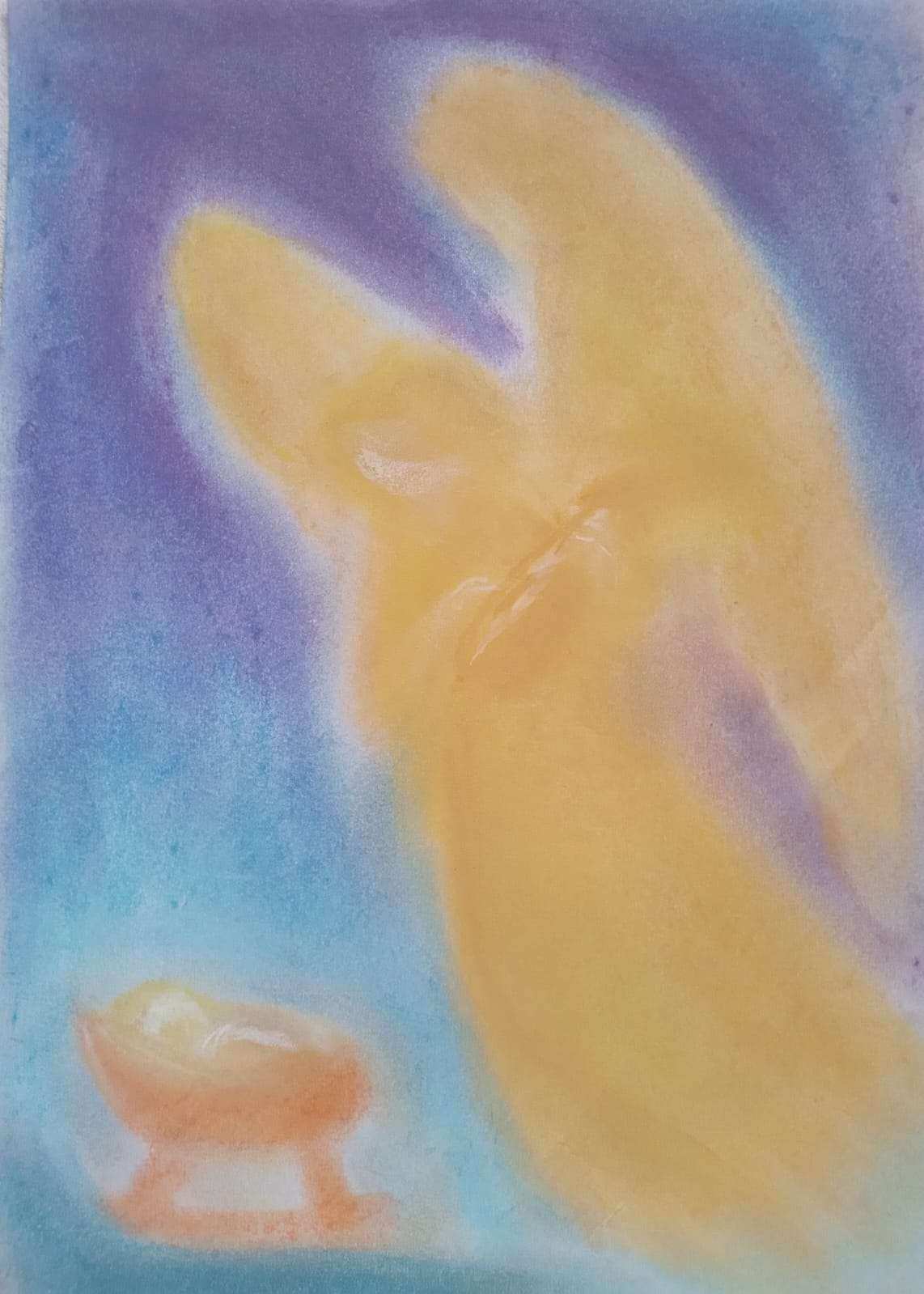 A través de formas suaves y colores etéreos, la obra evoca una atmósfera de protección y ternura. Arrullo sugiere un vínculo primario, donde la luz y el color construyen una sensación de cuidado y contención emocional.