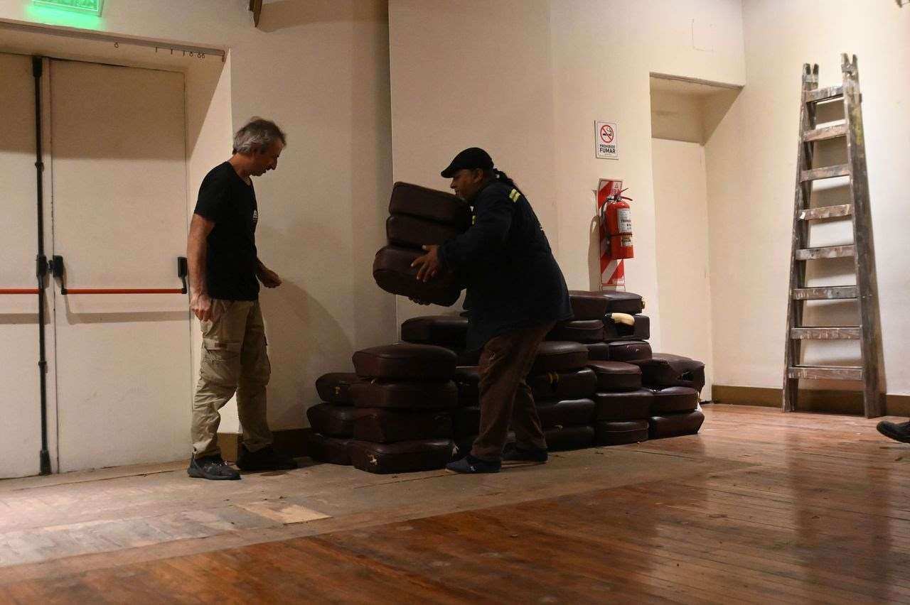 Por otra parte, se retiraron las alfombras tanto de la planta baja como del sector pullman, que serán reemplazadas por una nueva alfombra de pelo corto en color bordó, en línea con la estética del espacio. También se desmontaron las escaleras laterales del escenario como parte de la reorganización y optimización de la circulación interna.