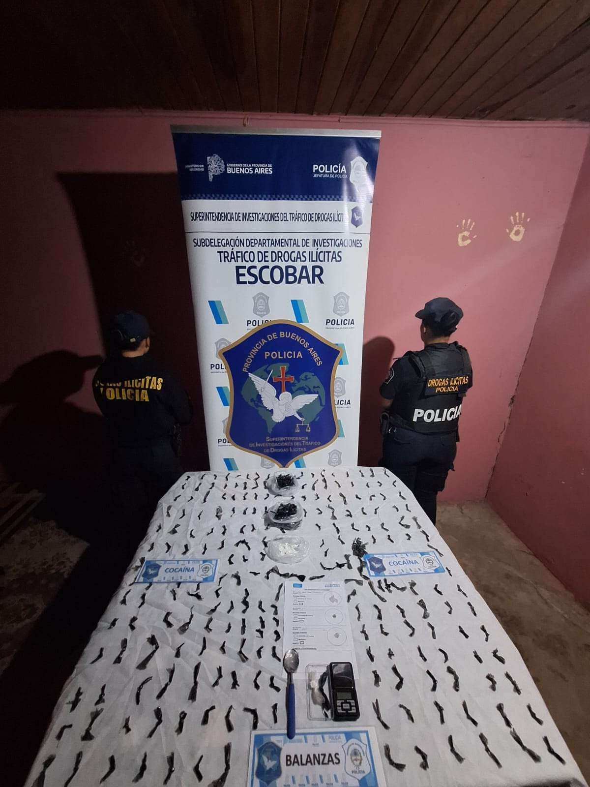 A partir de una investigación iniciada por denuncias vecinales realizadas al sistema 0800 Escobar Sin Drogas (0800-555-3473), fuerzas policiales desarticularon un punto de venta de estupefacientes en el barrio Cementerio de la localidad de Garín. Durante los allanamientos se aprehendió a dos personas —una mujer de 25 años y un hombre de 35— y se secuestraron 446 dosis de cocaína listas para su comercialización.