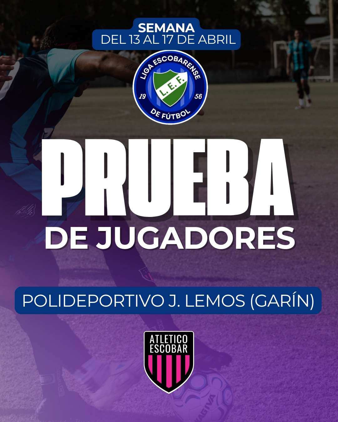Del 13 al 17 de abril, Atlético Escobar pondrá en marcha una nueva etapa de pruebas abiertas en sus sedes de los polideportivos de Ingeniero Maschwitz y Lemos (Garín). La convocatoria apunta a seguir nutriendo las divisiones formativas, tanto en masculino como en femenino, en un momento clave del año donde se rearman planteles y se proyecta la temporada.